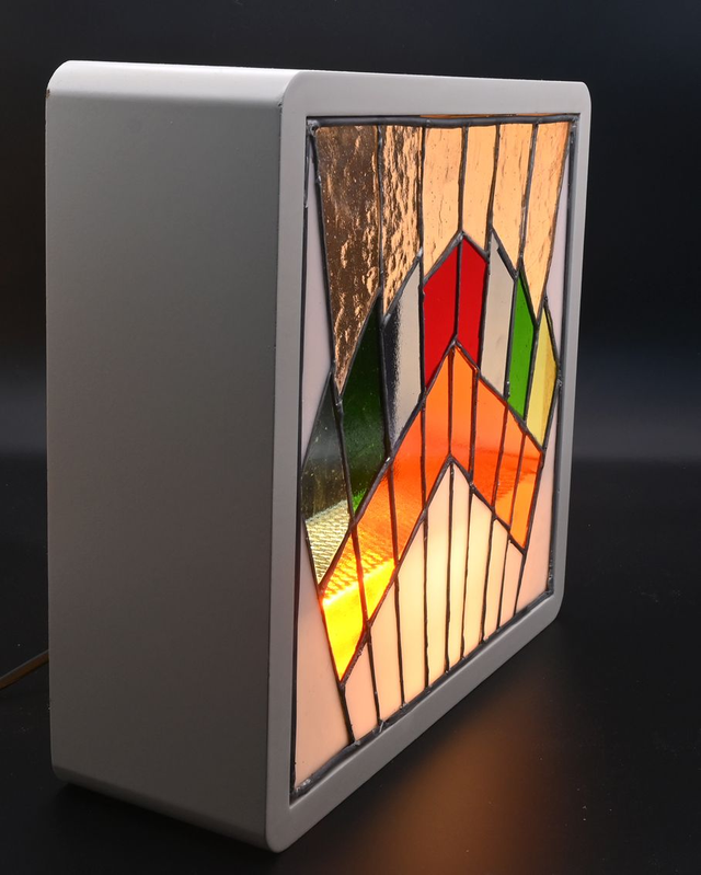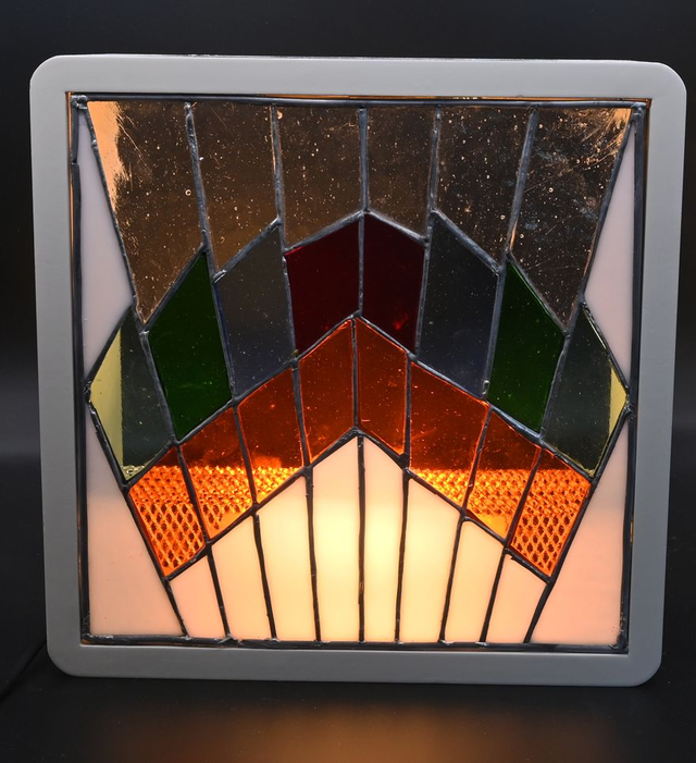 Applique mural dimensions 28 X 28 cm profondeur 10 cm. Vitrail technique Tiffany Lampe led
