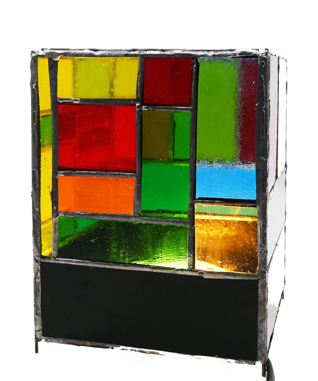 Lampe cage. Technique Tiffany dimensions : H 18 cm L 13,5 X 13,5 Composition ; verre, cuivre, plomb. Prix emballage et port compris via Mondial Relay en France métropolitaine Pour les autres destinations veuillez me demander un devis.